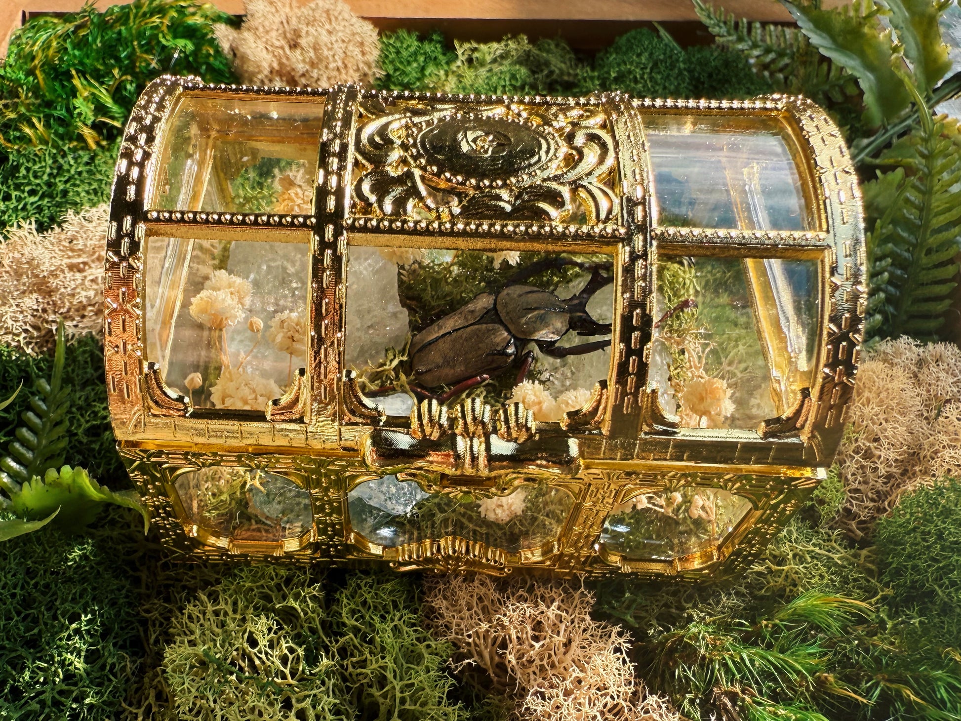 Terrarium – Handmade Crystal & Beetle Display in Gold Chest